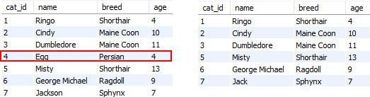 - delete from cats where name = 'Egg';