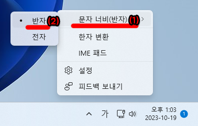 입력 모드에서 전각/반각 설정하기
