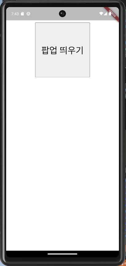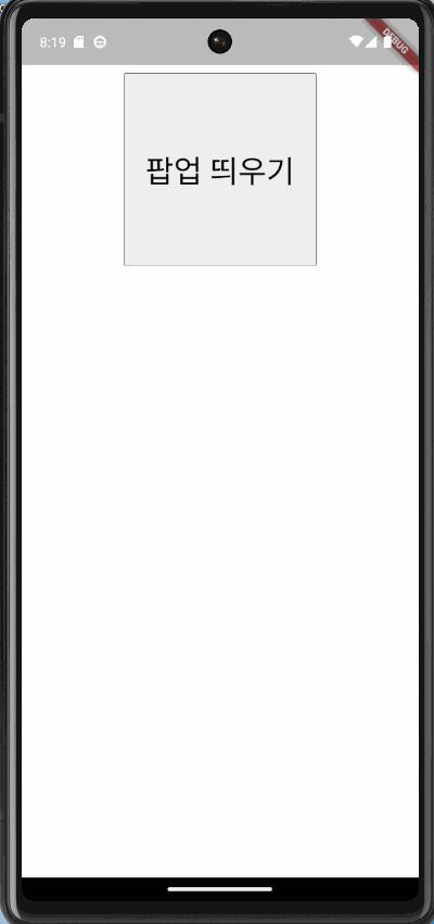 버튼을 눌러 팝업을 띄우고, 팝업에서 보이는 'X' 버튼으로 pop하여 이전 화면으로 돌아가는 절차이다.