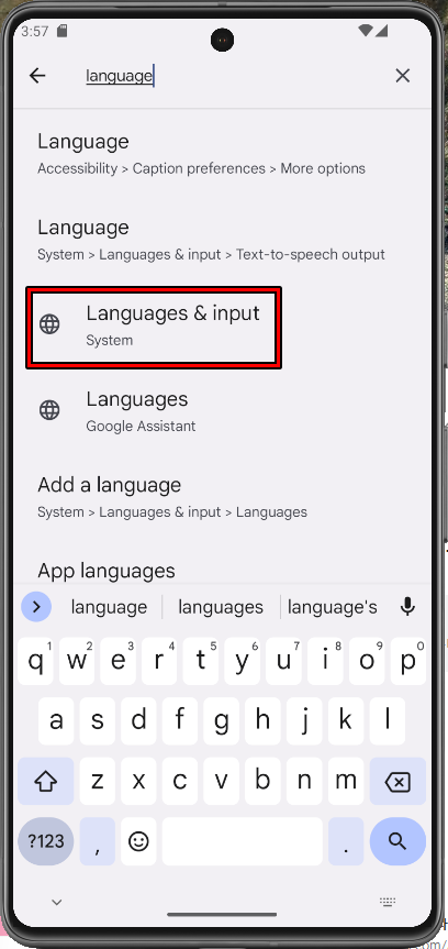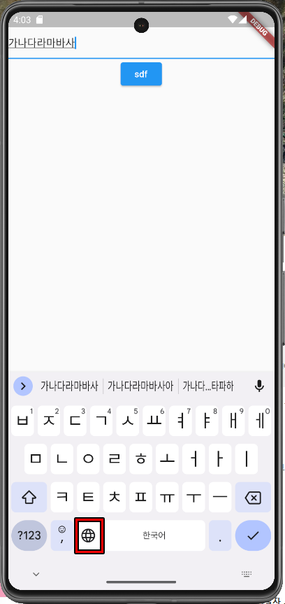- 텍스트 입력 하는 곳에서 키보드가 출력되면 하단의 지구 모양 터치