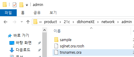 파일 위치는 오라클 설치 경로(ORACLE_HOME 환경 변수의 경로)에서 network - admin 이다.