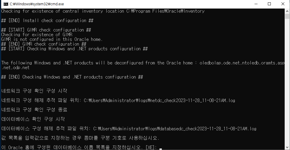 (자동적으로 꺼져서 따로 오라클 데이터베이스 삭제가 완료되었다는 캡쳐는 찍지 못했다.)
