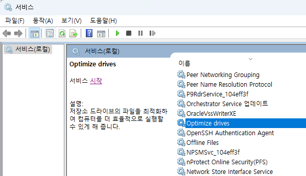 실행 창에서 'services.msc' 를 실행하여 서비스 창을 연다.