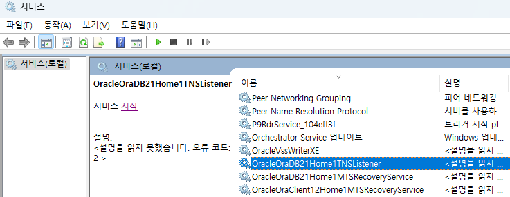 이 방법은... 이미 오라클 데이터베이스 폴더 자체를 삭제를 한 사람들이 진행하는 방법이다.