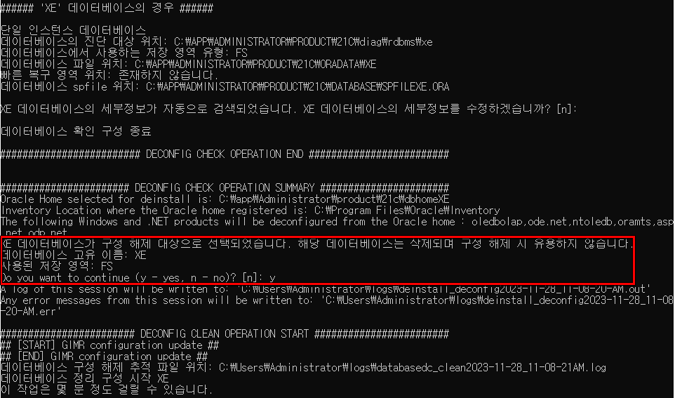 오라클 설치 경로에서 deinstall 폴더로 들어가서 deinstall.bat 파일을 실행한다.
