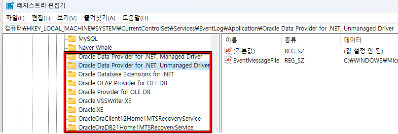 아래의 경로 하위에 존재하는 오라클 관련 폴더를 모두 삭제한다.