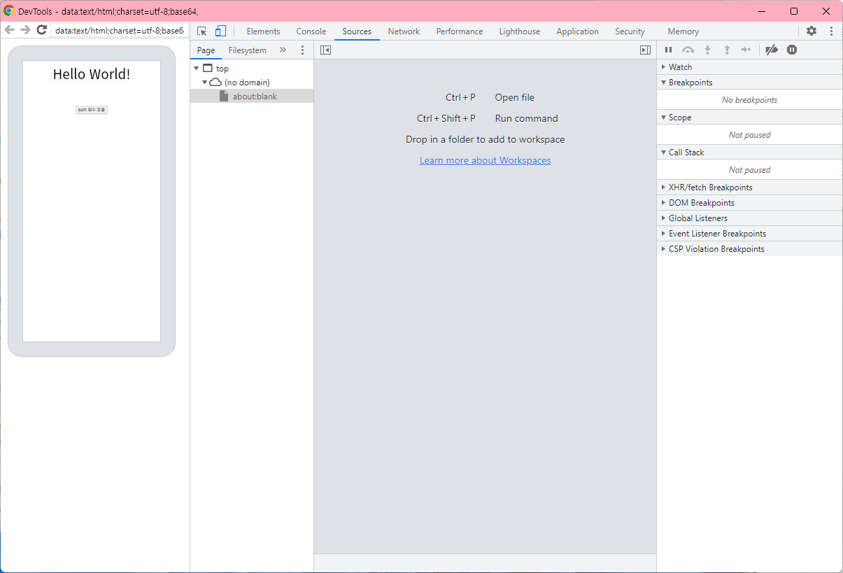 - 'sum 함수 호출' 버튼을 눌렀을 때의 화면