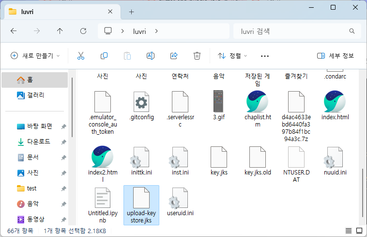 디렉토리 주소 창에 아래의 명령어를 입력하고 upload-keystore.jks 파일이 생성되었는지 확인해보자.