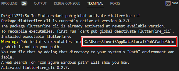 그럼 정상적으로 'flutterfire cli' 패키지 정상적으로 설치될 것이다.