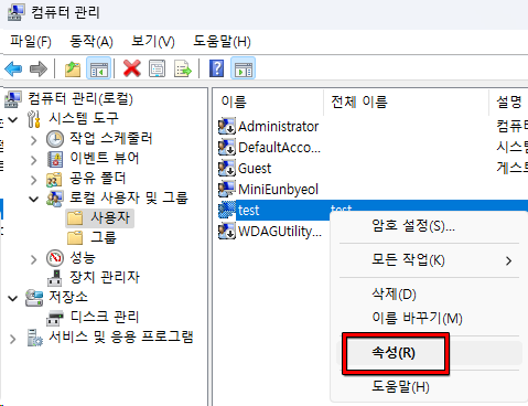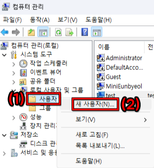 - 로컬 사용자 및 그룹 - 사용자 우클릭 - 새 사용자