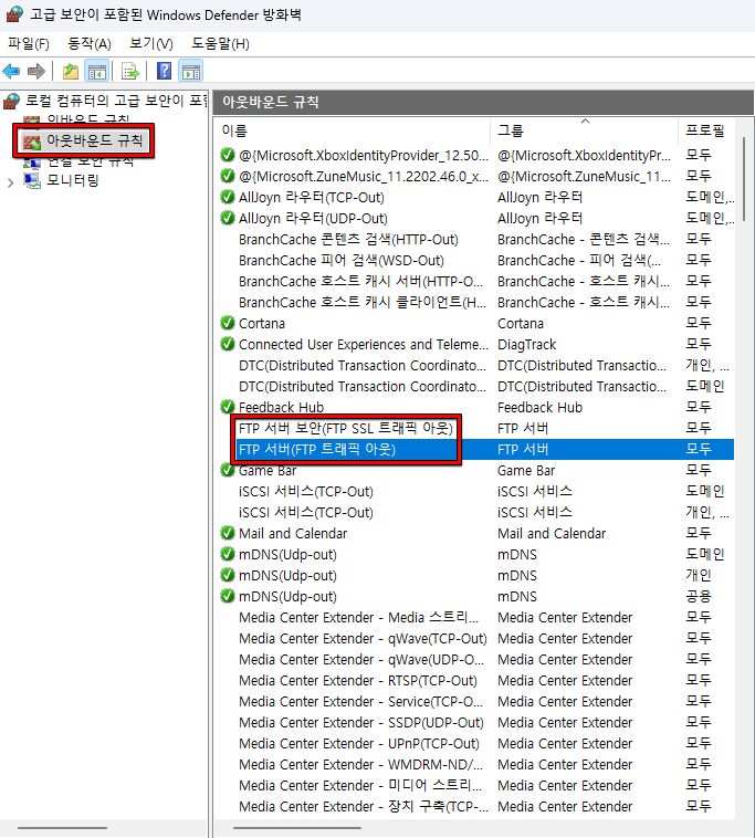 - 아웃바운드 규칙 - 두 개의 항목 마우스 우클릭 - 규칙 사용