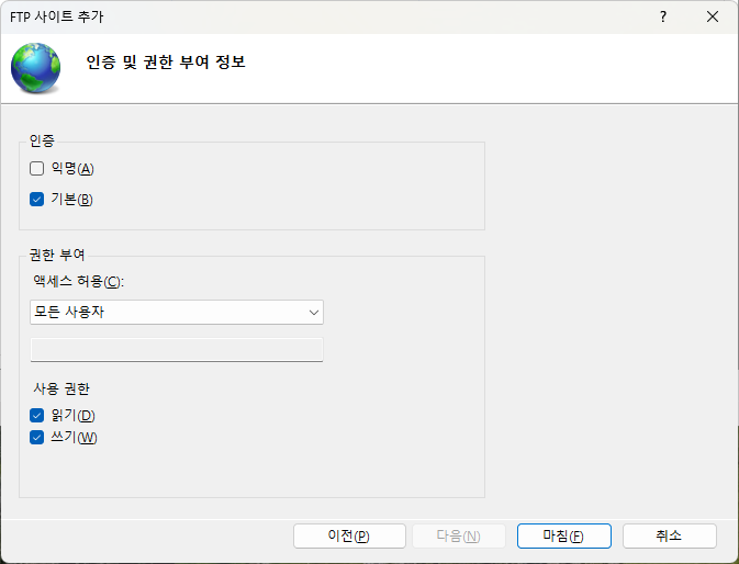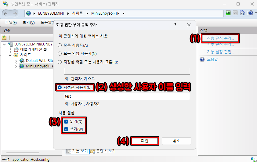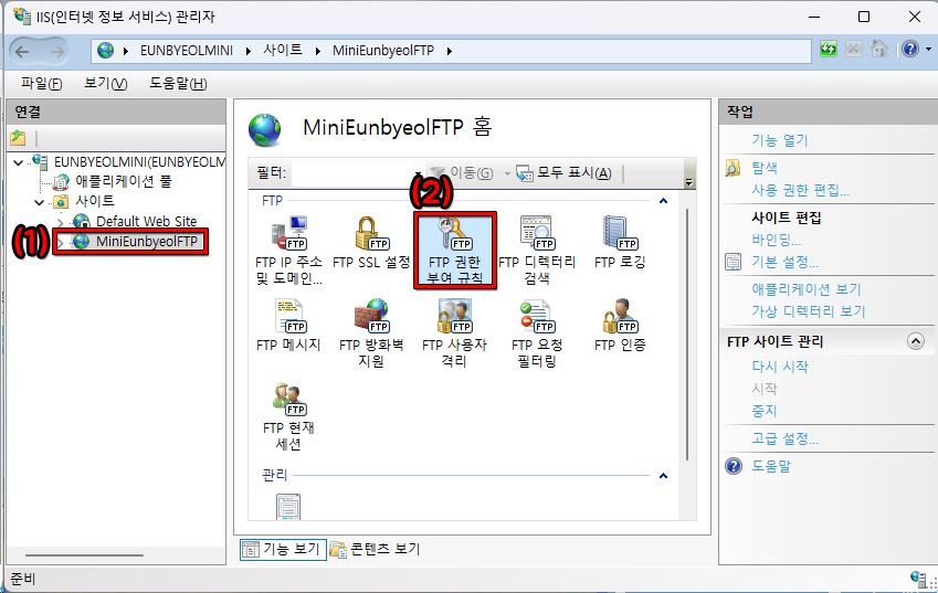 - 사이트 하위의 추가한 FTP 사이트 선택 - FTP 권한 부여 규칙