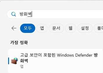 - 시작 - 고급 보안이 포함된 Windows Defender 방화벽