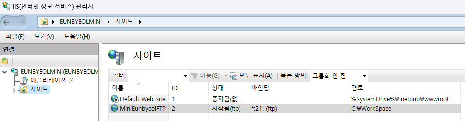 윈도우에서 FTP 파일 서버를 사용하려면 우선 IIS(인터넷 정보 서비스)와 FTP 기능이 활성화가 되어있어야 한다.