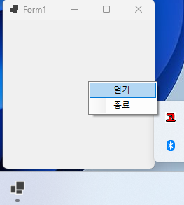 - 폼이 백그라운드로 실행 될 때, 시스템 트레이의 메뉴를 활용하여 폼을 보여준다.