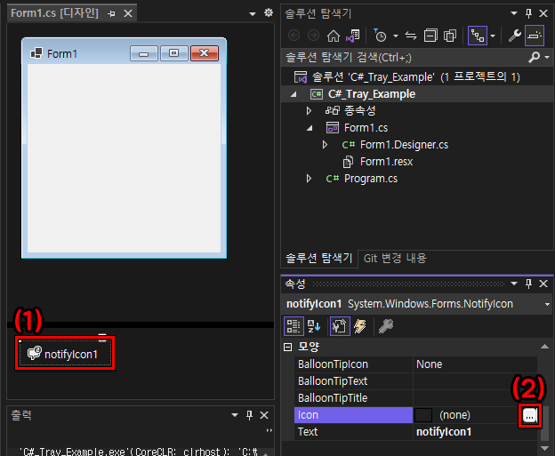 컨트롤 추가 및 설정하기 (NotifyIcon)