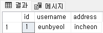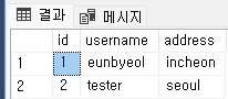 - id 컬럼의 값이 1과 2인 행 조회하기