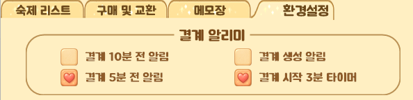 - 결계 알리미를 '숙제 리스트' 탭이 아닌 '환경설정' 탭으로 이동