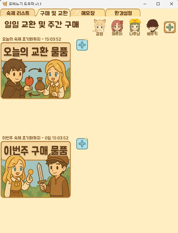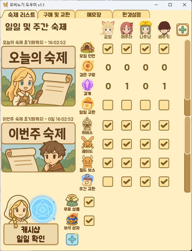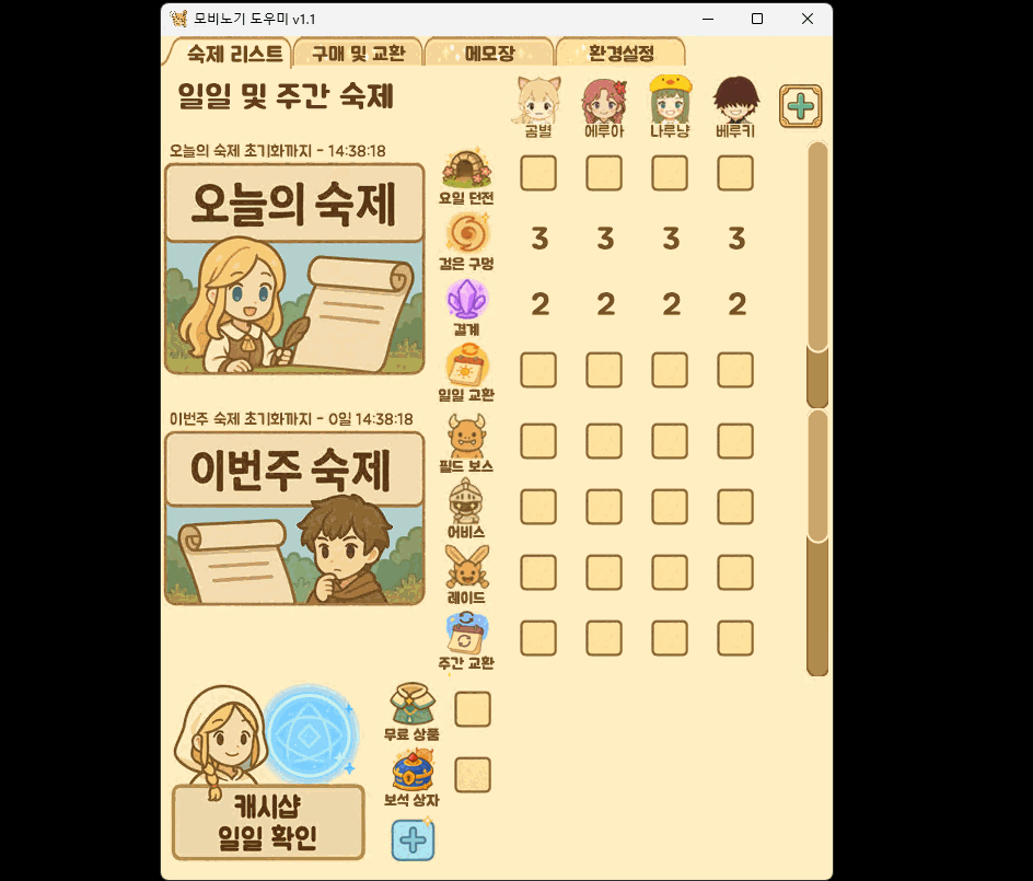 효율적이고 직관적인 일일/주간 숙제를 손쉽게 체크하기 위한 프로그램입니다.
