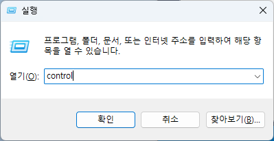 - 'control' 입력 후 '확인'